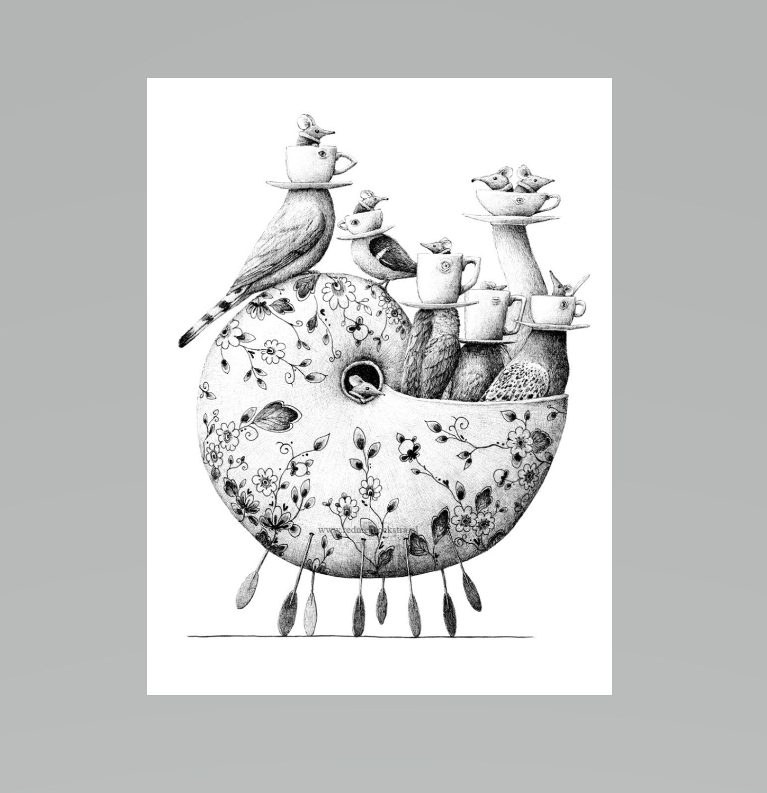 De werking van dingen is een fascinatie van mij en in veel tekeningen vind je dit terug. Doordat ik bijvoorbeeld apparaten en voorwerpen openwerk en dan vrijelijk invul wat er zich binnenin bevindt. Hierdoor krijgt een onderwerp vaak een volledig ander gevoel of betekenis.