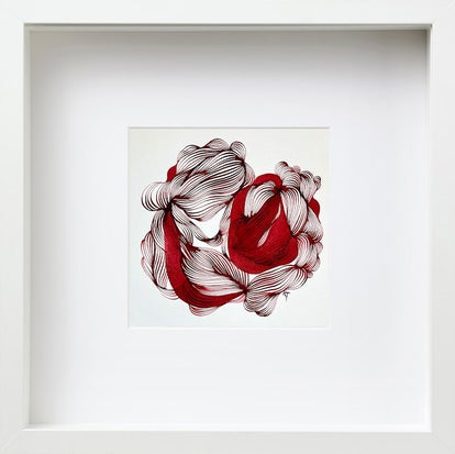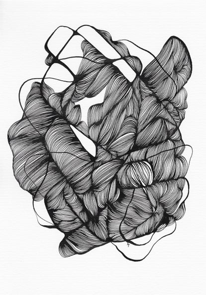 De abstracte tekeningen van Kristine Tumanyan beginnen met een eerste lijn. Een pure, eerlijke lijn die nergens door beïnvloed is behalve haar eigen gevoel. Dat is de basis van iedere tekening van haar. Je intuïtie volgen, niet bang zijn om keuzes te maken, emoties te verbeelden op het papier, en de vrijheid te voelen, maakt het tekenproces meditatief en het eindresultaat verrassend.